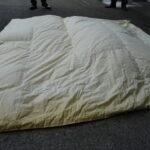 2) 羽毛の塊(ダウン)や偏りが目立つ:ダウンが偏って集まり、綿毛が布団の中で動かなくなると、保温層の効果が落ちます。ダウンの弾力が回復しにくい状態です。
